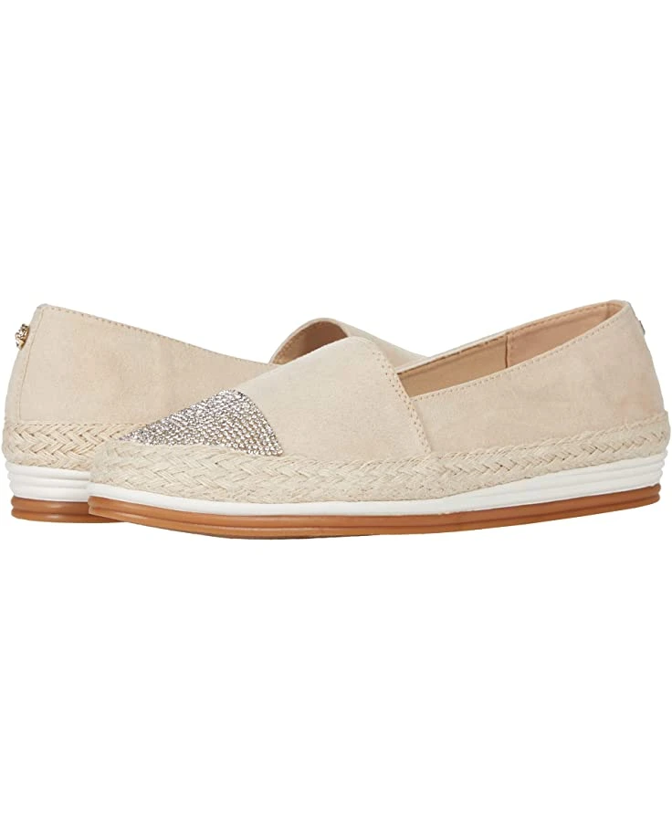 - Style comes easy with the Anne Klein® June featuring a slightly wedged slip-on style shoe constructed with a well bedded footbed for all day wear and espadrille soles for added style boasting all over glittery upper.